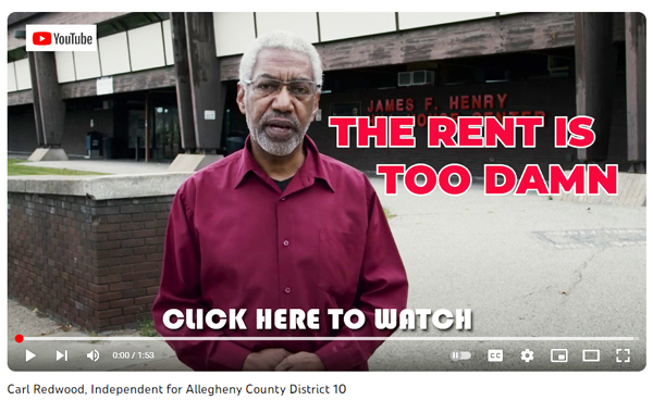 "Carl Redwood has been fighting for housing for all, tenants rights, and power to the Black, poor and working class for longer than I have been alive. Carl has taught me — has taught many of us — how to organize for justice for all. He has proven he can lead, and I know he will help transform the Allegheny County Council into a council that works for all." said Congresswoman Lee. "That is why I am endorsing Carl Redwood for Allegheny County Council, District 10."