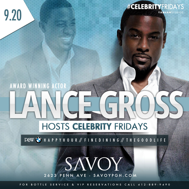 Join SAVOY Restaurant of Pittsburgh on Friday, September 20th for Celebrity Fridays hosted by actor Lance Gross!