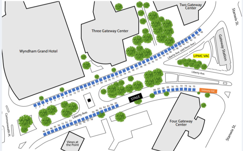 Following the Three Rivers Art Festival, Marshall has used this same location during the annual Juneteenth, Black Music Celebration and Pittsburgh Soul Food Festival as a Small Business Vendor Zone to allow Minority Businesses to sell products to event attendees, make money and then circulate those funds back into Pittsburgh's disadvantaged communities.