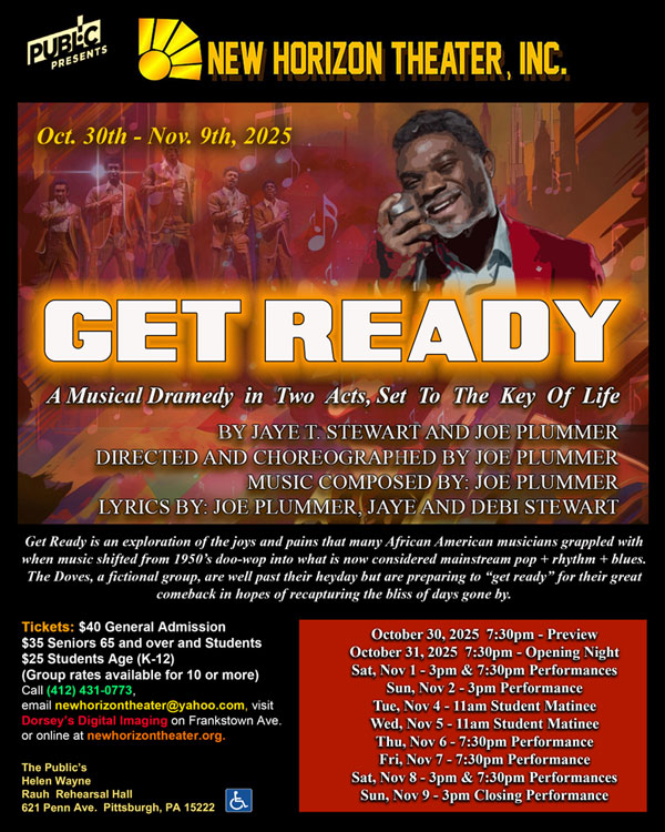 New Horizon Theater, Inc. presents GET READY, October 30th - November 9th, 2025 at The Public's Helen Wayne Rauh Rehearsal Hall!