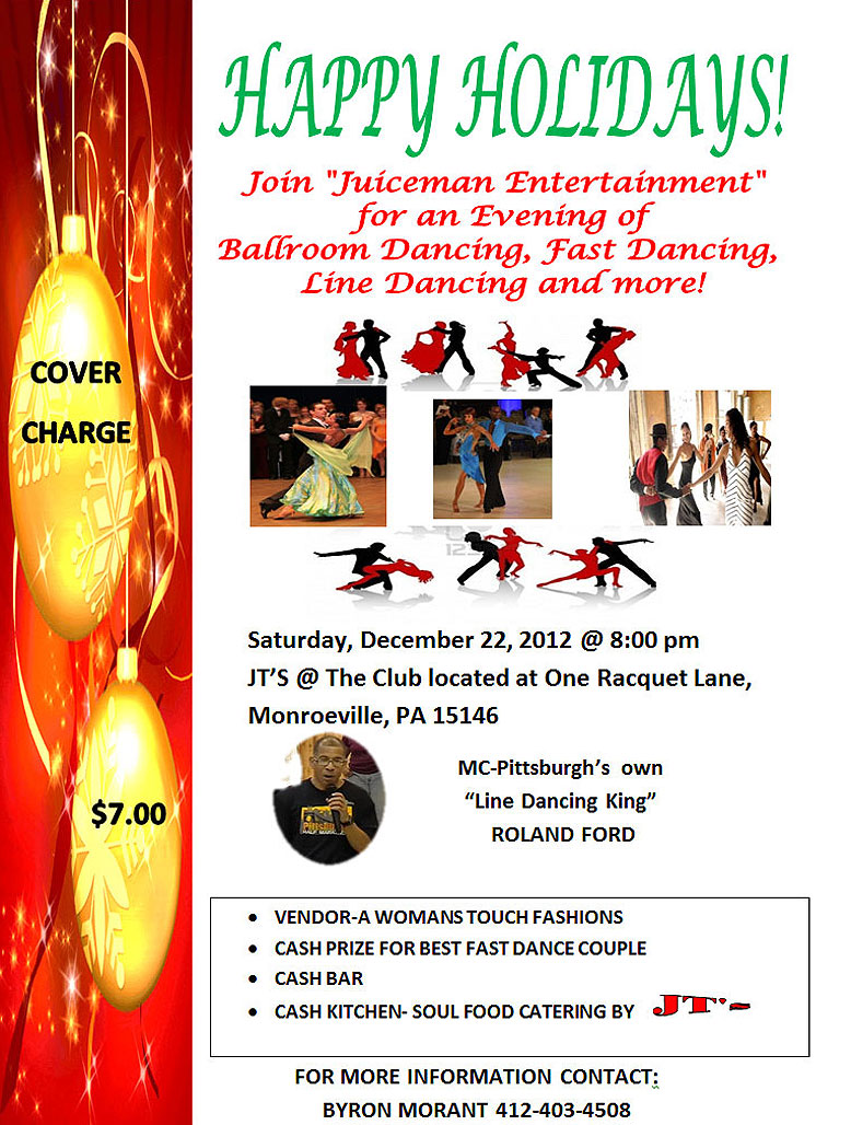 LINE DANCING AND MORE! SATURDAY, DECEMBER 22, 2012 @ 8PM JT'S @ THE CLUB LOCATED AT ONE RACQUET LANE, MONROEVILLE, PA 15146