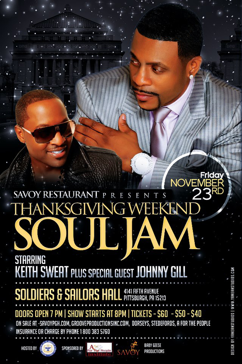 Tickets on Sale @ savoypgh.com, grooveproductionsinc.com, Dorsey's Records, Stedefords, A For The People Insurance